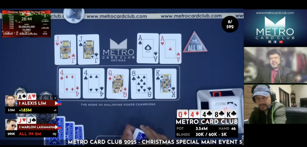 Alexis Lim has done it! After delivering a bad beat at heads up, Lim easily disposed of Jonas Rothmund on the next hand to win the 2025 Metro Christmas Special!